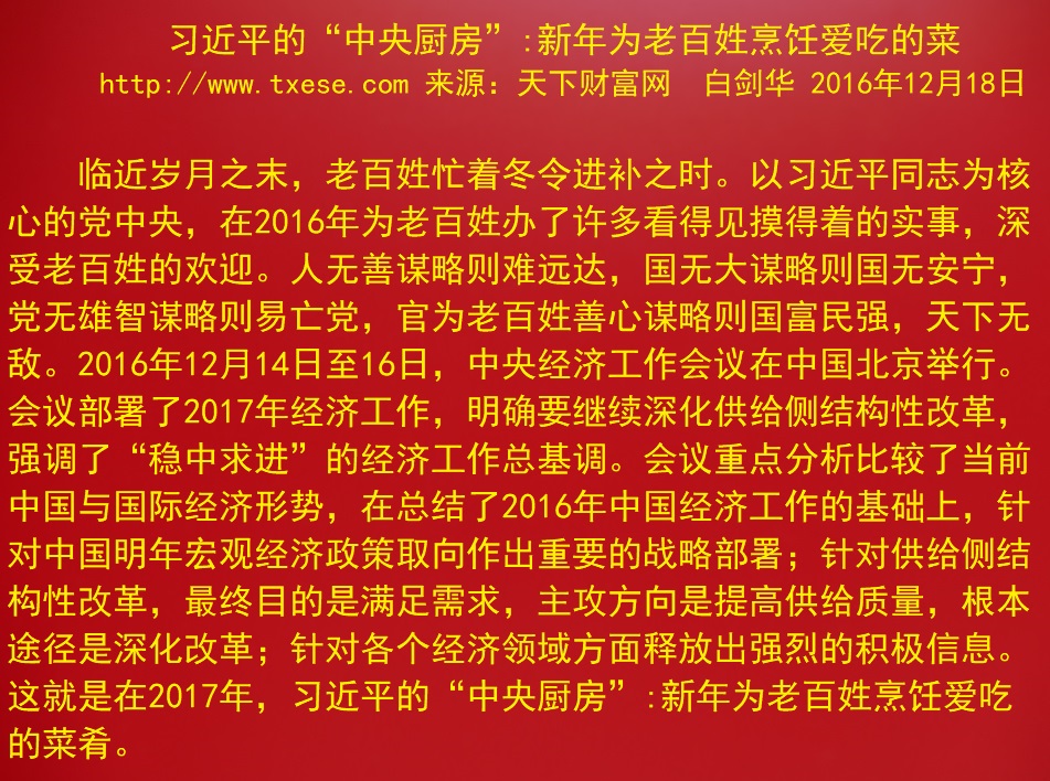 习近平的“中央厨房”:新年为老百姓烹饪爱吃的菜
